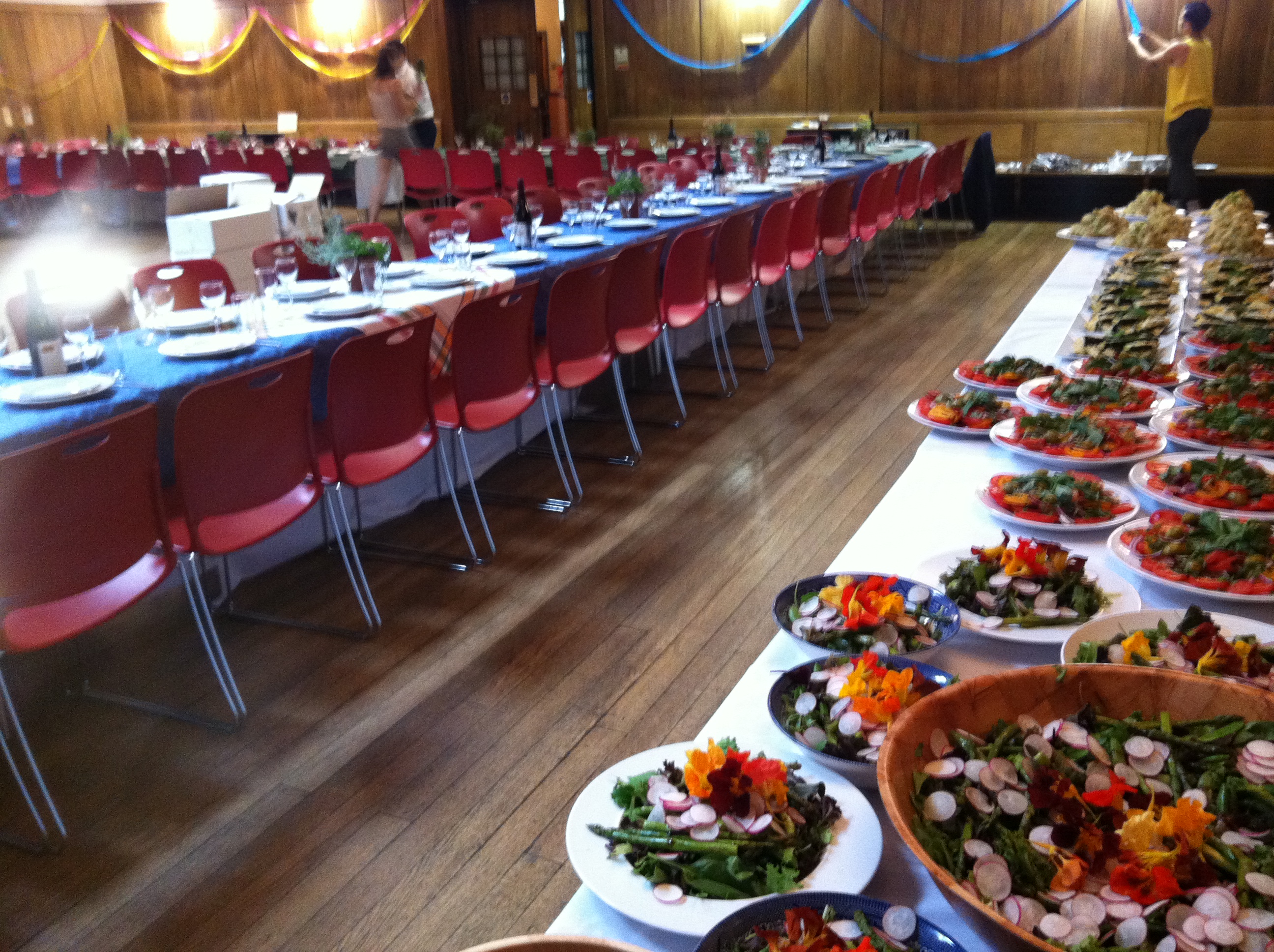 Catering for the lovely Rosie Lovell, Author of ‘Spooning with Rosie’ and ‘Supper with Rosie’ and her lovely partner Raff , my team and I: the amazingly wonderful Stephanie (chef extraodinaire) and Louise (like myself, both ex-employees of The Bride) created a wedding banquet for their big day. Providing canapés and a 3 course sit down meal for 150 guests at a central London venue here are some photo’s and the menu we served for Rosie and Raff’s big day: