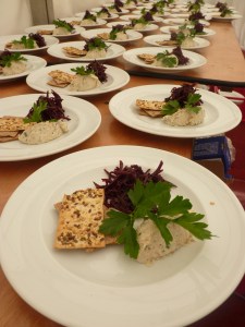 Another wedding set in a marquee (featured image), on an estate outside the beautiful seaside town of Rye we prepared nibbles and champagne, followed by a seated meal of starters and salads to accompany a delicious hog roast: